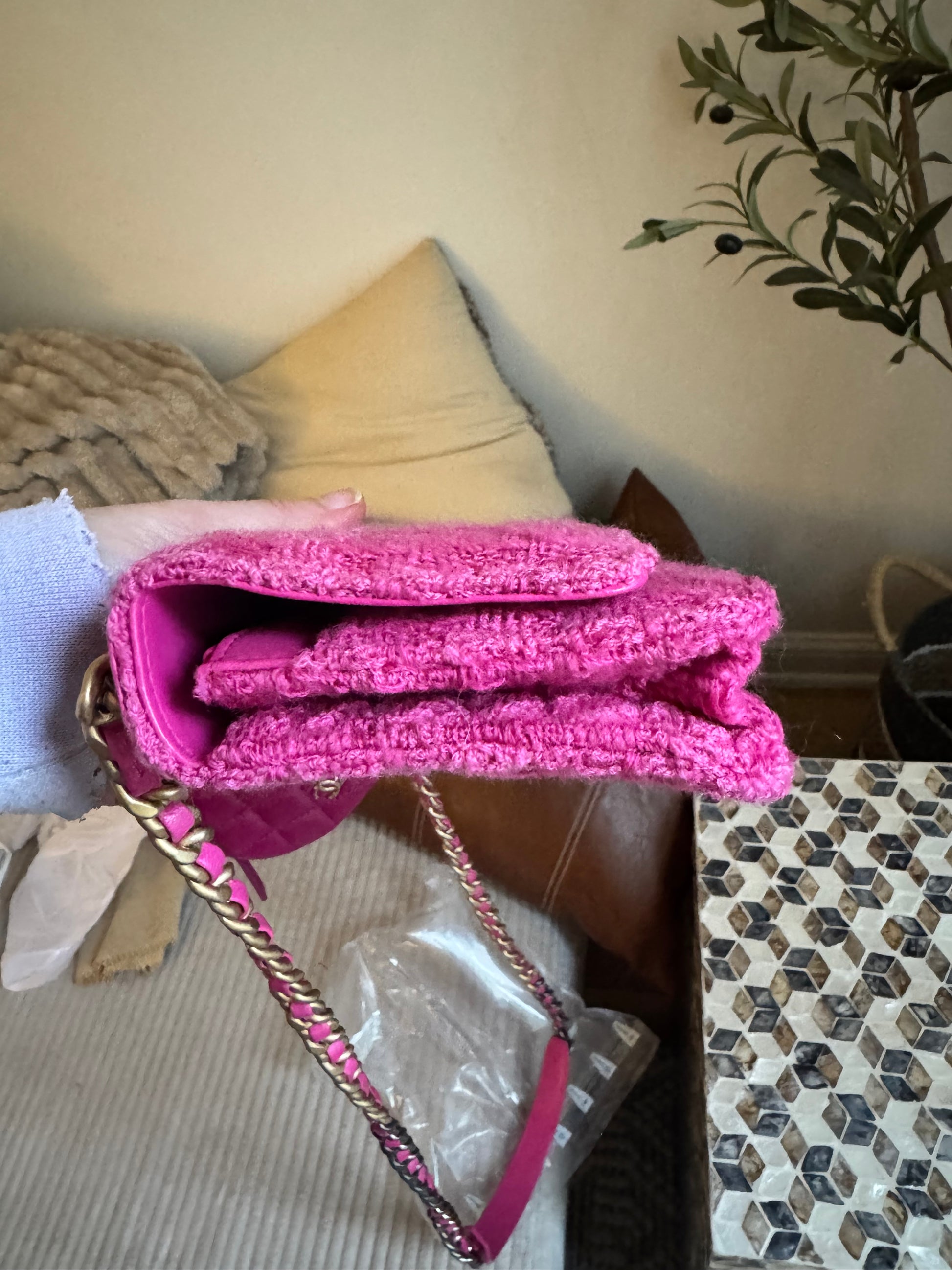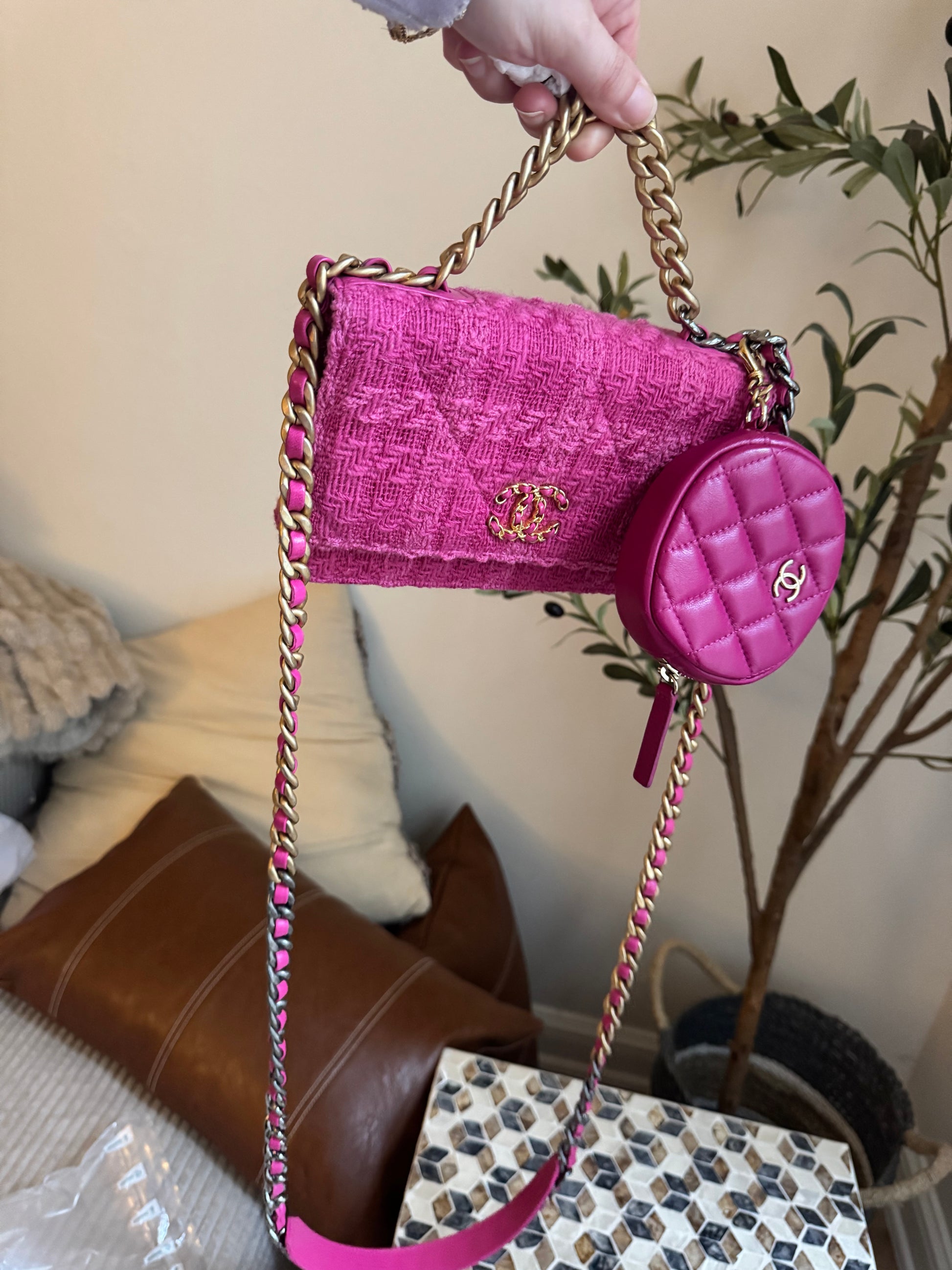 Chanel C19 Pink Tweed Wallet on Chain + Coin Purse